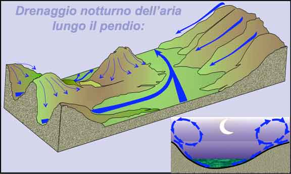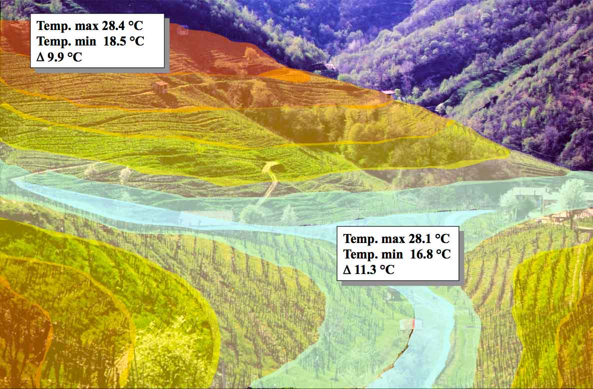 Molti dei fondo valle hanno subito danni da gelata, dovuta al drenaggio notturno dell’aria fredda lungo il pendio.